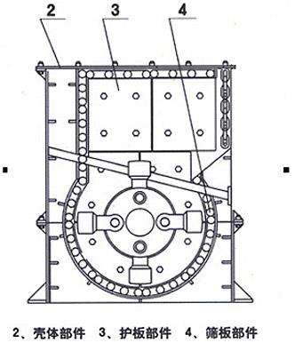箱式破碎機主要由:箱體、蓖條、轉子、錘頭(板錘)、破碎板、襯板等組成,機架部分為三分體結構,只須打開破碎機后部機殼,即可進行更換板錘、破碎板、襯板等檢修維護作業。